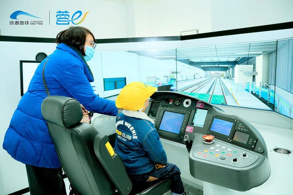 成都现代有轨电车有限公司组织青少年和家长们在轨道学院实训基地体验蓉2号线模拟驾驶,经过一系列的科普体验,宣传城市轨道交通行车调度、站务、乘务及车辆等专业知识,带领青少年及家长,以全新视角探索有轨电车的奥秘。