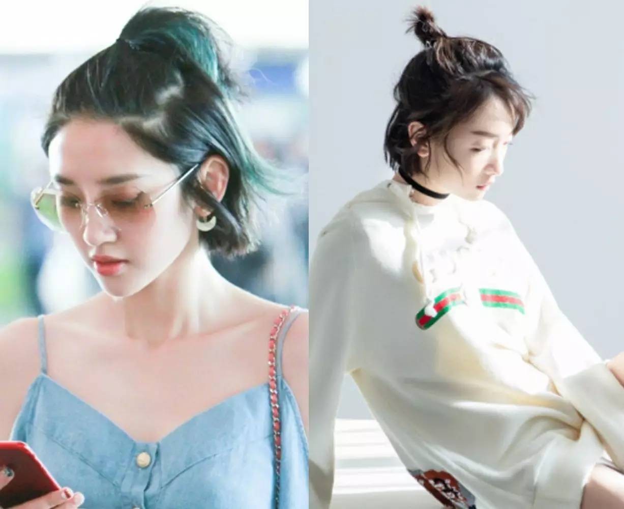短头发的初中女生,如果颜值允许的话,可以将短发扎起来哟,头顶与侧边发丝聚集在发旋位置,扎成高耸可爱的丸子头。