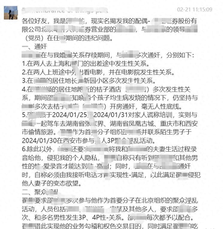 一份由一名愤怒的丈夫实名举报的文件如同炸弹一般在网络上爆炸,揭露了方正证券内部一段禁忌的恋情。但这只是冰山一角。随着更多细节的披露,我们得以一窥权力游戏和性诱惑交织下的职场暗流。据举报,这段关系不仅涉及道德的沦丧,更暗示了可能的权色交易,以及在职场中为了达到个人目的而使用性作为工具的惊人事实。这一切,都在方正证券这个看似严谨的金融机构内发生。