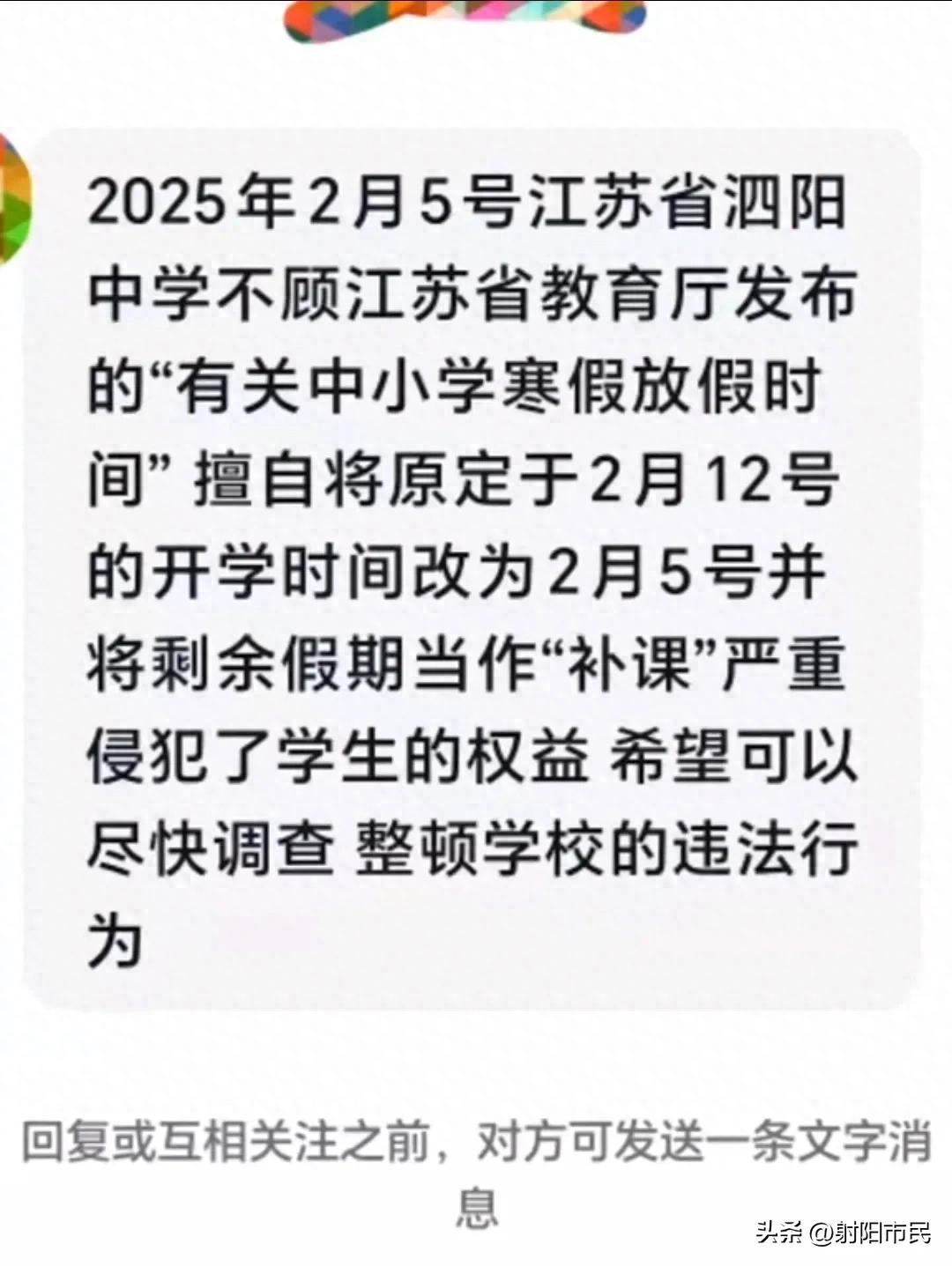 家长举报安徽定远中学提前开学惹争议,官方回应,评论区炸锅了