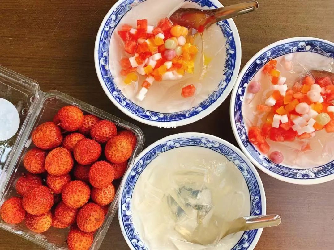 流行于川渝地区的冰粉,小料的灵魂是红糖。在红糖汁的包裹下,每一块儿冰粉都显得明艳动人。再配上花生碎、葡萄干,丰富冰粉的口感和营养。而信阳地区的石凉粉,灵魂是一勺散发着清凉气息的薄荷汁。在糖水和薄荷汁的映衬下,石凉粉的清新气质越发凸显,映照着信阳的夏天,也多了丝温婉的气息。
