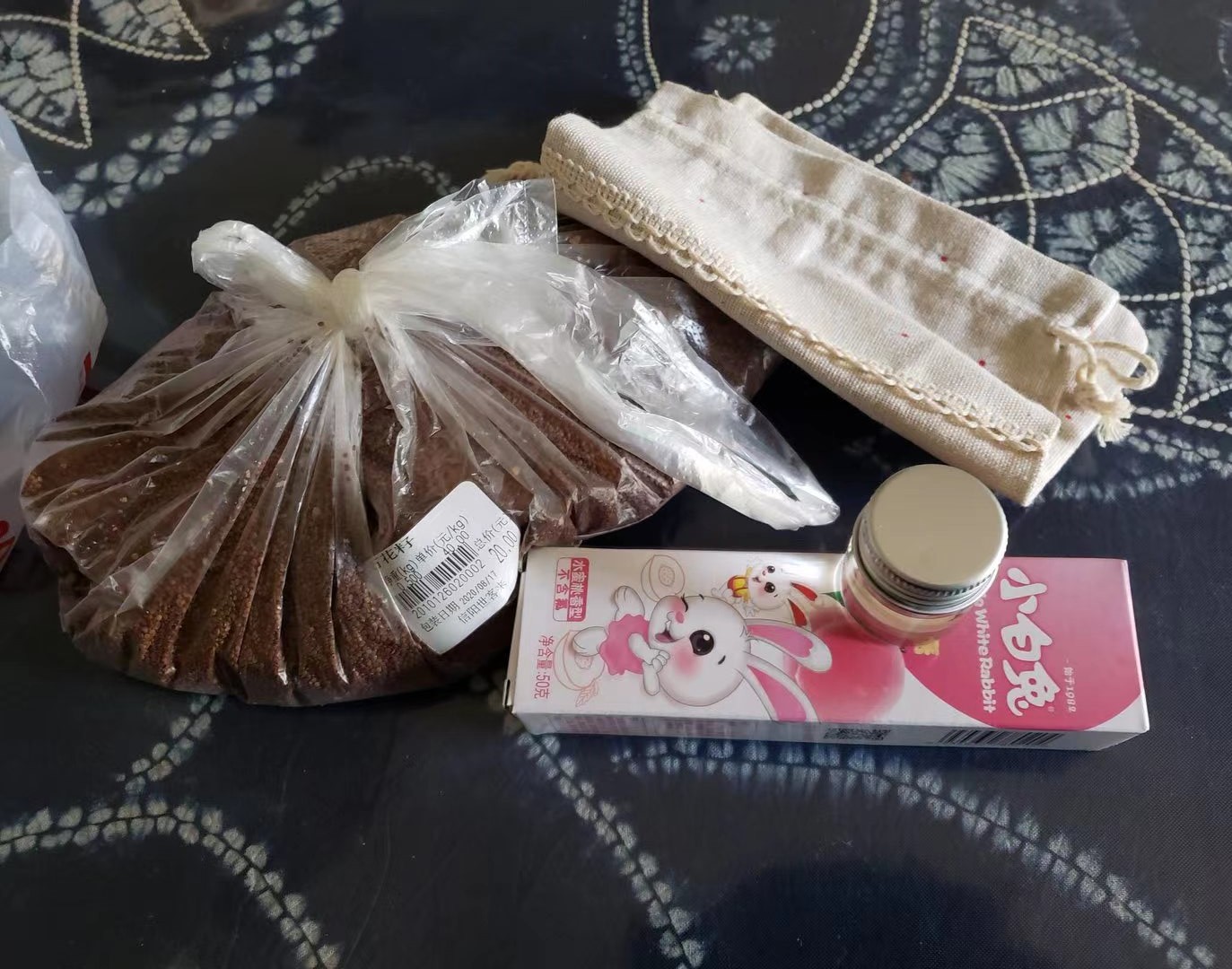 石花籽50克 / 凉白开 / 水果味的牙膏小白兔牌(中华牙膏)5厘米 / 干净的纱布 / 1小瓶薄荷水