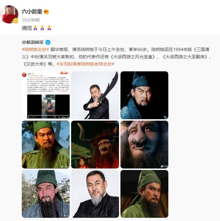 六小龄童也转发悼念陆树铭,表示“痛惜”。