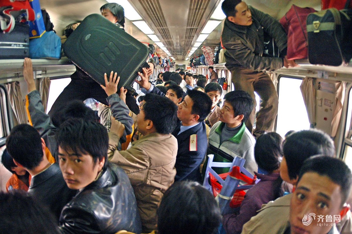 2007年2月3日,厦门火车站首班春运列车上挤满了返乡过年的在厦务工人员。