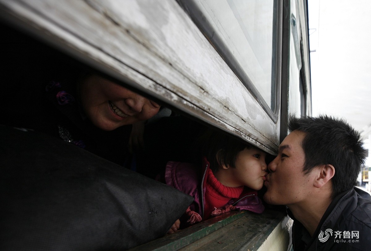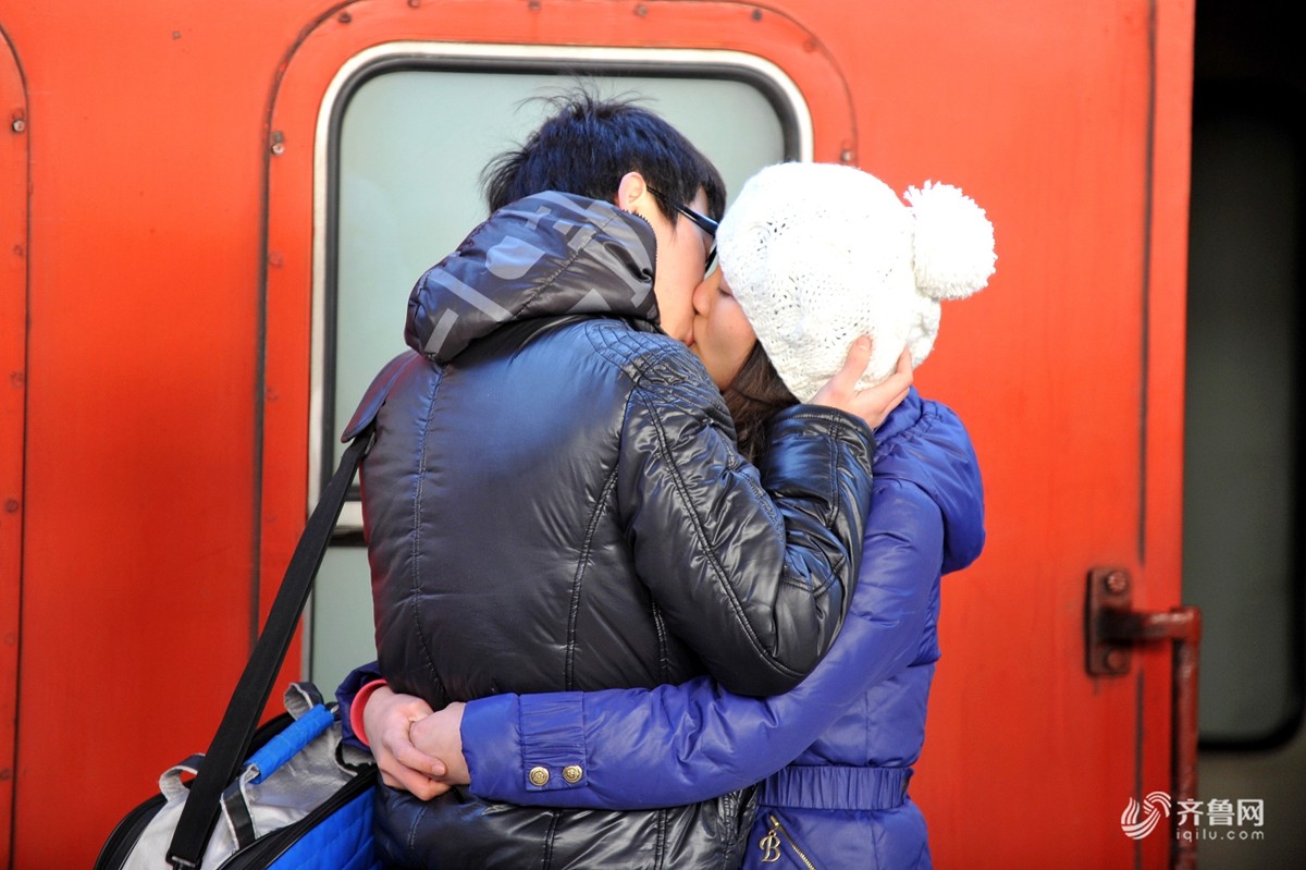 2011年1月19日,在北京火车站站台上,即将分别的情侣相拥吻别。