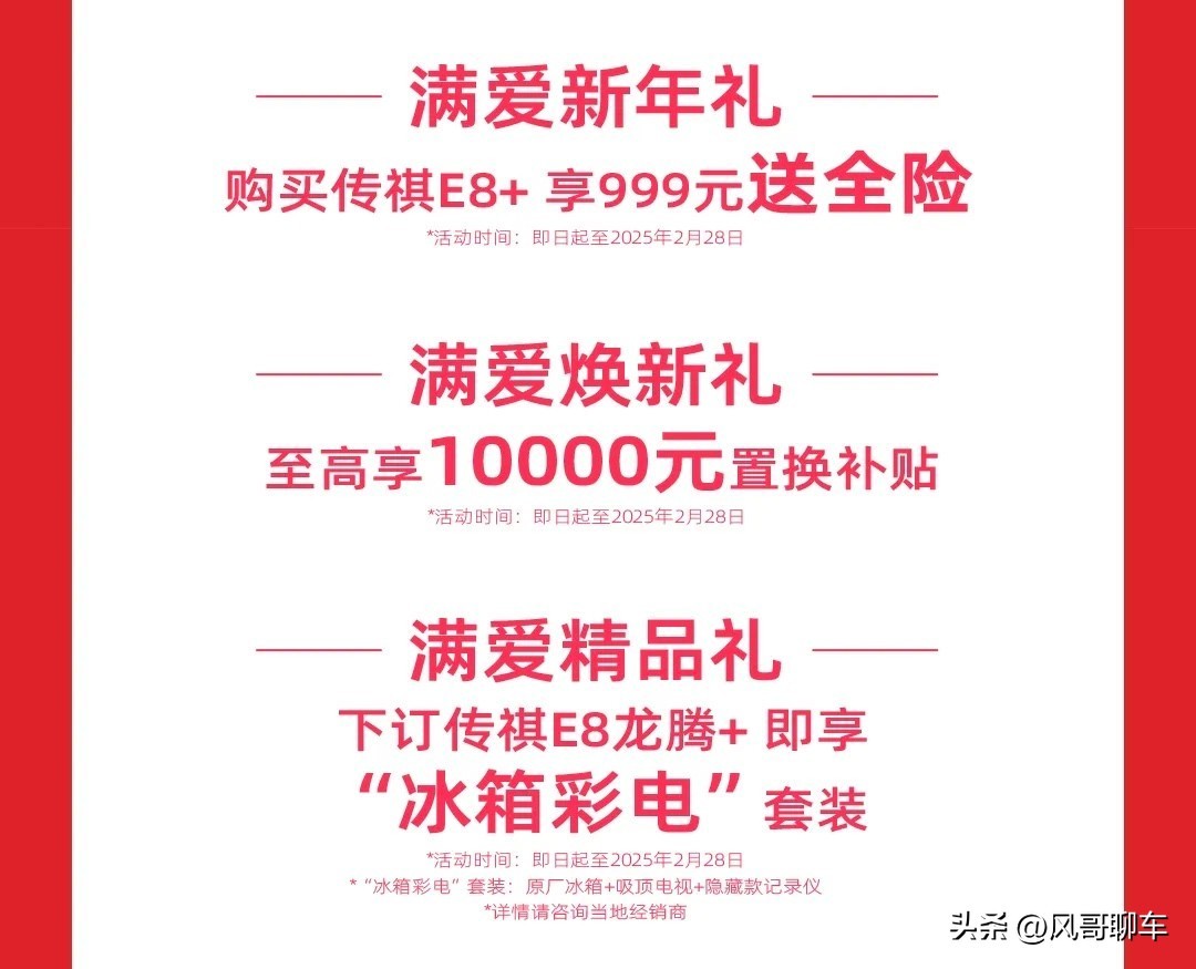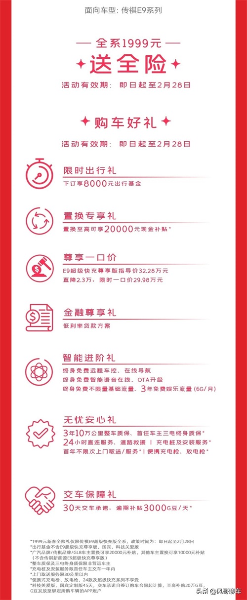 另外2月购买传祺M6、M8和E9,仅需支付1999元就送全险,购买传祺E8+即享999元送全险!