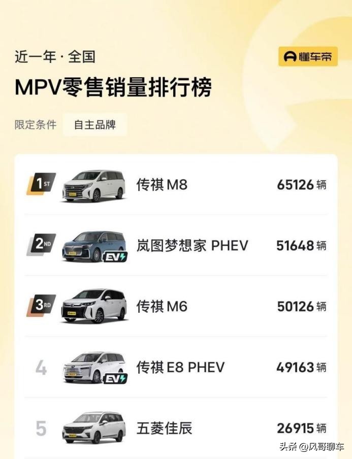 2025年MPV销量最高的品牌的广汽传祺,共售出183892辆MPV,其中传祺M8摘得2024年度中国品牌MPV销冠。这个被网友称为中国MPV专家的品牌,已经累计拥有超过73万MPV用户。