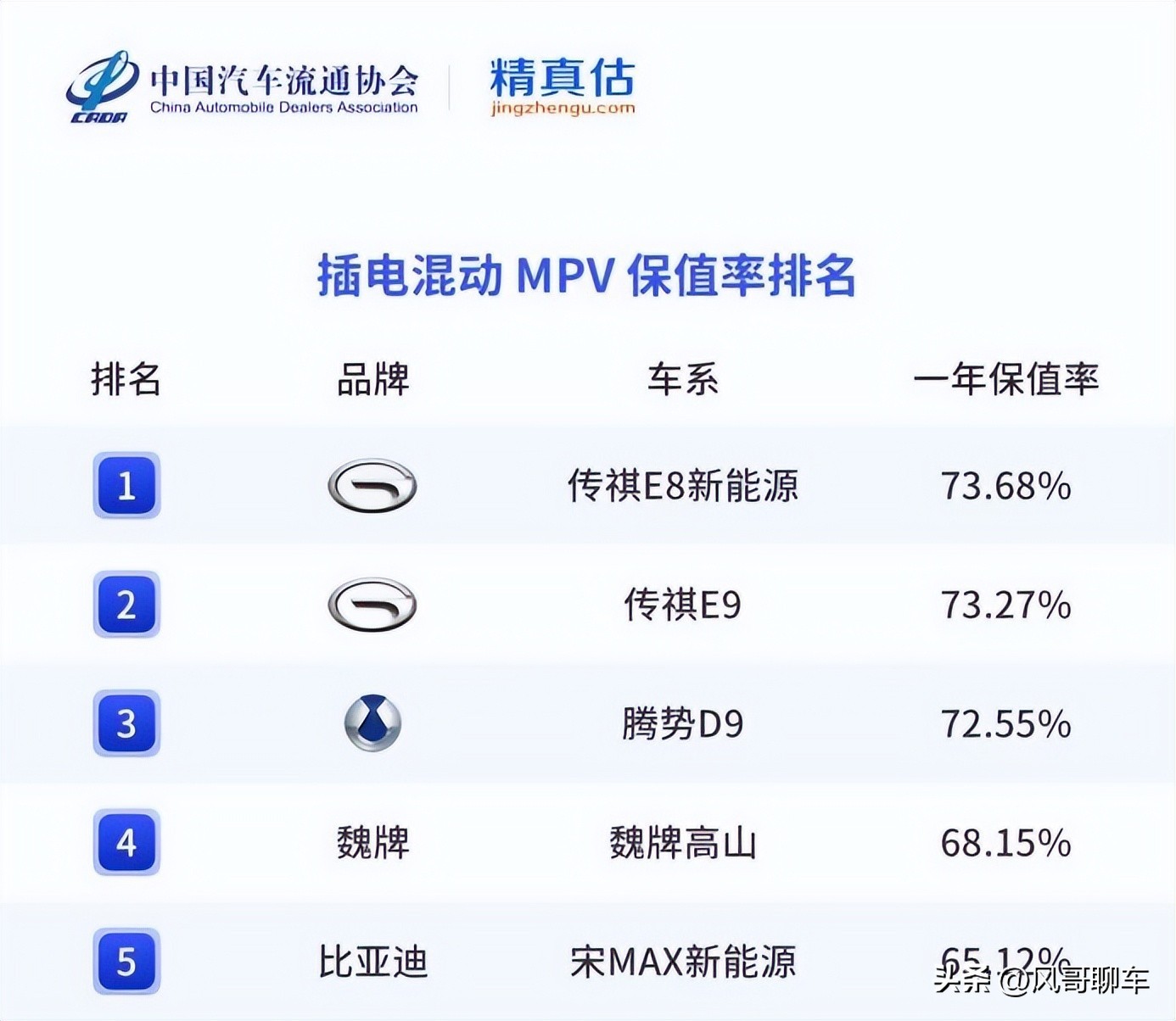 保值率方面,根据2024年度中国汽车流通协会发布的数据,传祺M8和M6的三年保值率分别高达67.57%、63.20%,稳居中国品牌MPV保值率第一和第二。新能源车方面,传祺E8和E9分别以73.68%、73.27%的一年保值率包揽插混MPV保值率榜单的冠亚军。