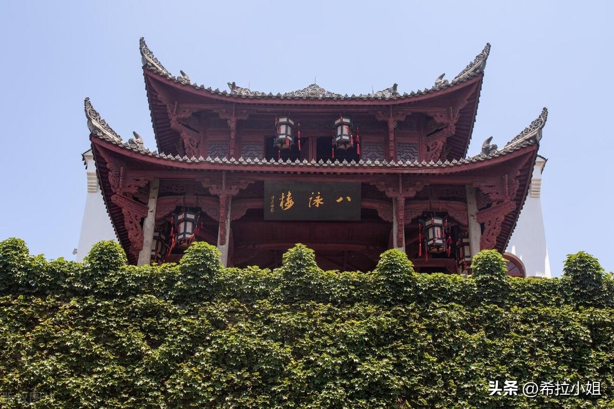 位于八咏路的八咏楼,始建于南朝时期,原来叫玄畅楼,后来改名为元畅楼。历朝历代很多文人来这里题咏,1135年,著名女词人李清照写下《题八咏楼》:“千古风流八咏楼,江山留与后人愁。水通南国三千里,气压江城十四州。”现在你可以登高眺望婺江,景色还不错。