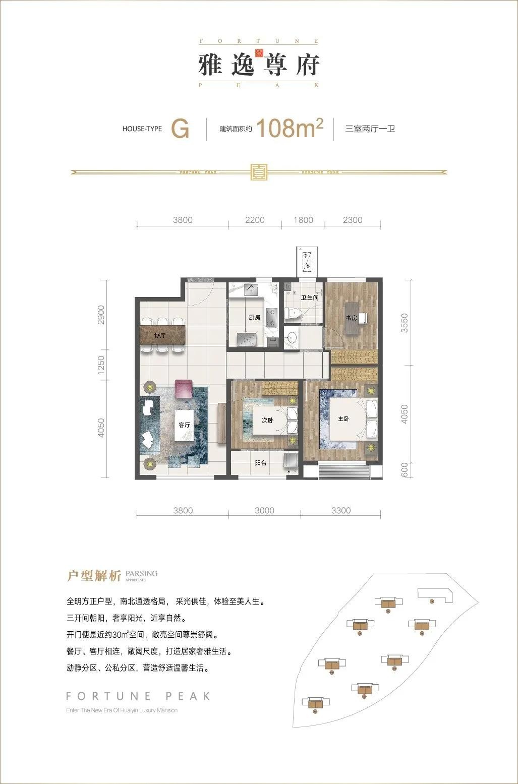 108户型分布于2#、3#、4#、5#、6#、7#、8#楼中间户