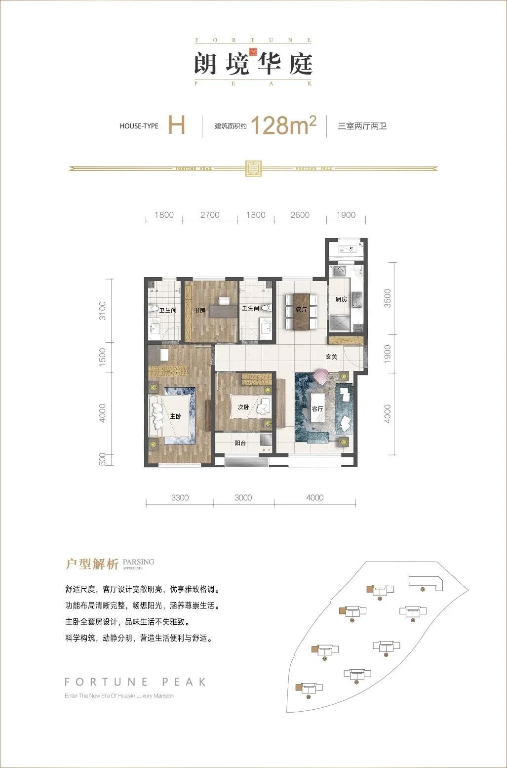 128户型分布于2#、4#、6#、8#楼边户