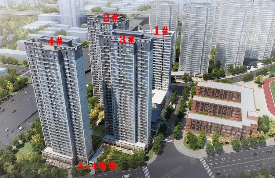 A-4地块共4栋楼,容积率3.7。其中,1#楼为精装居住公寓;2#楼、3#楼、4#楼均为高层住宅,两梯四户。2#楼、3#楼为毛坯,4#楼为精装。