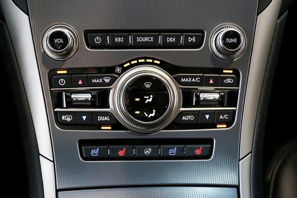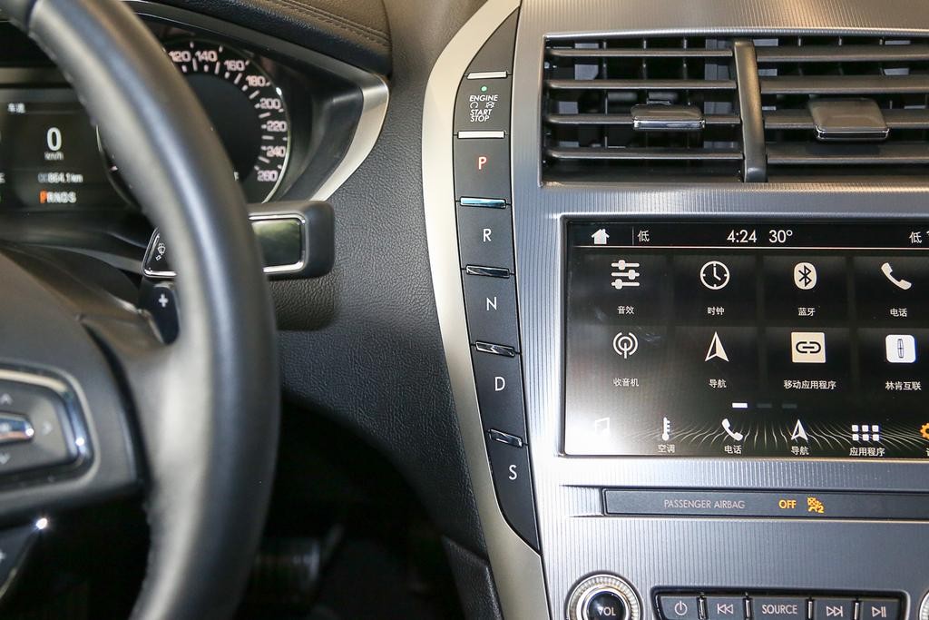 不同于其他车型,林肯家族采用按键式换挡,而MKZ的换挡按键便集中于中控屏的左边,换挡时还是比较方便的。而它的中控屏下方则是空调控制区域,除了中间的旋钮以外,其他的按钮给人凌乱的感觉,操控起来得仔细看清楚才可以顺利进行,不是很方便。