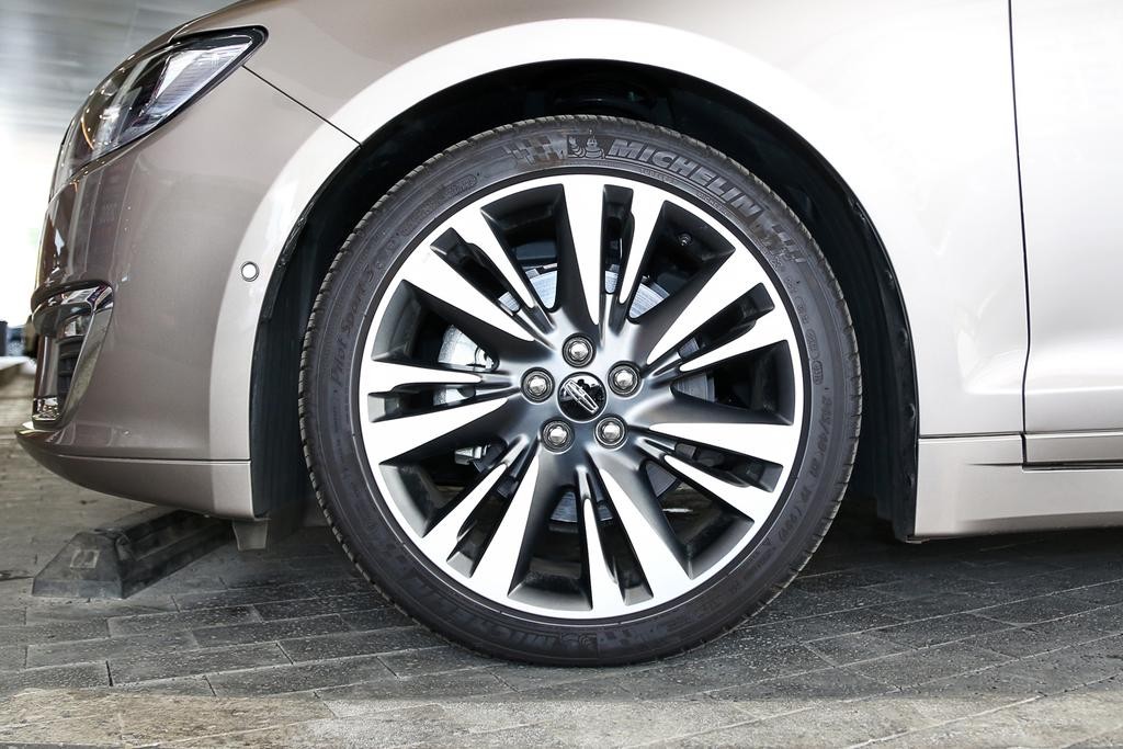 车身侧面的线条较为流畅,整车尺寸4925*1864*1477mm,轴距2850mm。从尺寸方面来看,车身长度在B级车中处于中等偏上,但MKZ的轴距在同级中并不占优,反而只能算是普通的存在。MKZ采用亮面铝合金多辐式轮毂,视觉效果看起来的确不错。