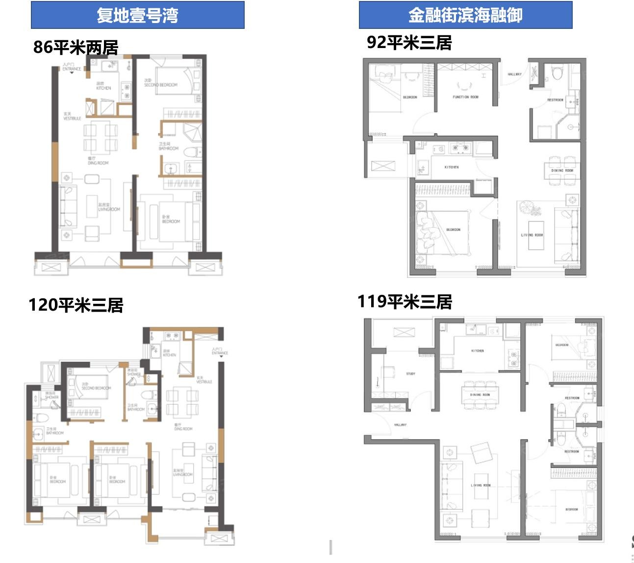 两个项目都属于高容积率的项目,这在寸土寸金的于家堡金融区非常正常,但是用地指标上还是有着明显差别,复地壹号湾项目容积率在3.7,而金融街滨海融御则是5.2的容积率,因此从用地指标上复地壹号湾要稍好。仔细想想看也是,毕竟地最开始是复地拿的,肯定要把相对好一点位置留给自己开发。另外从小区规划上二者基本相同,都是两个地块容纳10栋高层。从交付标准上看,复地壹号湾为毛坯交付,而金融街滨海融御为精装交付,但是这点主要看客户喜好,不愿意在装修上花费功夫的可以多关注金融街项目,而喜欢自己装修的可以多关注复地。