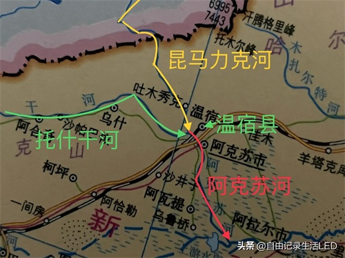 它发源于中国和吉尔吉斯坦之间的天山山脉。