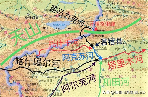 它有四大源流:和田河、叶尔羌河、喀什噶尔河、阿克苏河