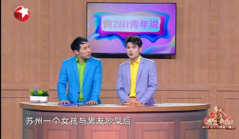 继王勉和大张伟的音乐脱口秀登上了央视春晚的舞台之后,凭借《脱口秀大会》火爆出圈的何广智、徐志胜,这一次也带着创意脱口秀节目《有ZHI 青年说》登上了东方卫视春晚的舞台。