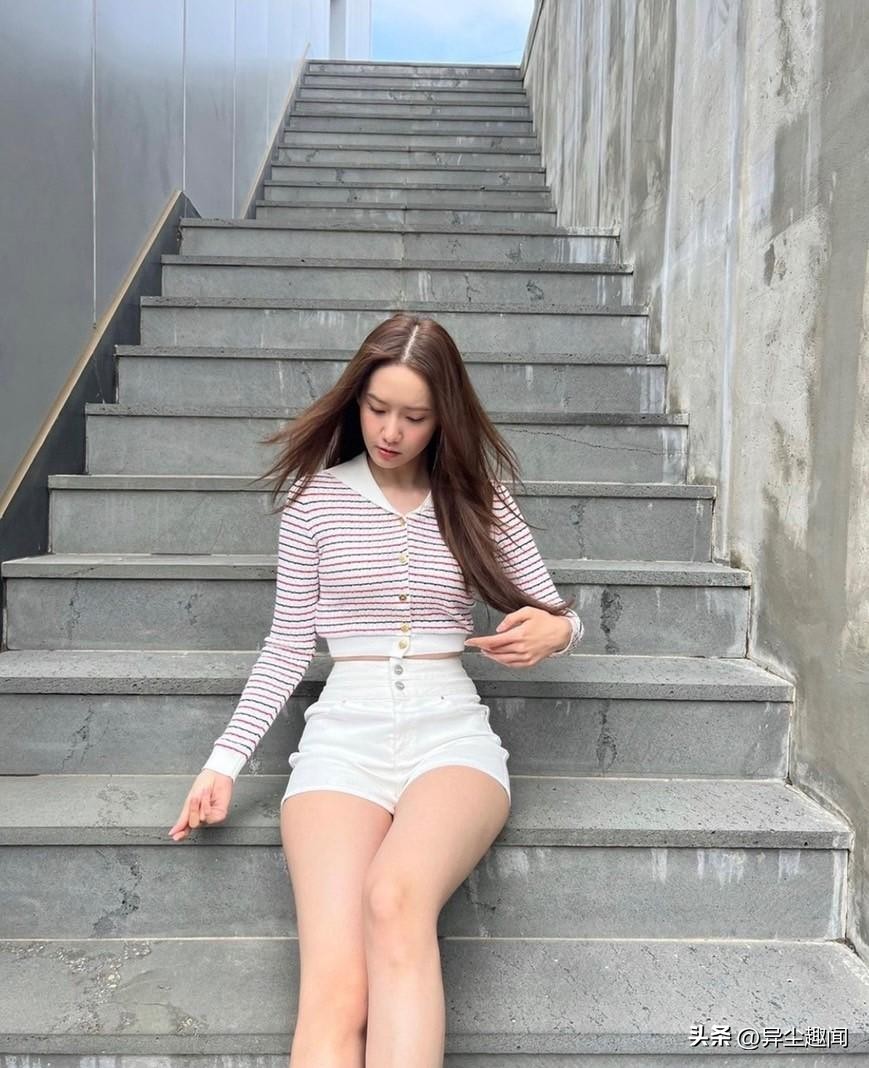 林允儿的上衣来自代言品牌Miu Miu,搭配短裤拍出大长腿。