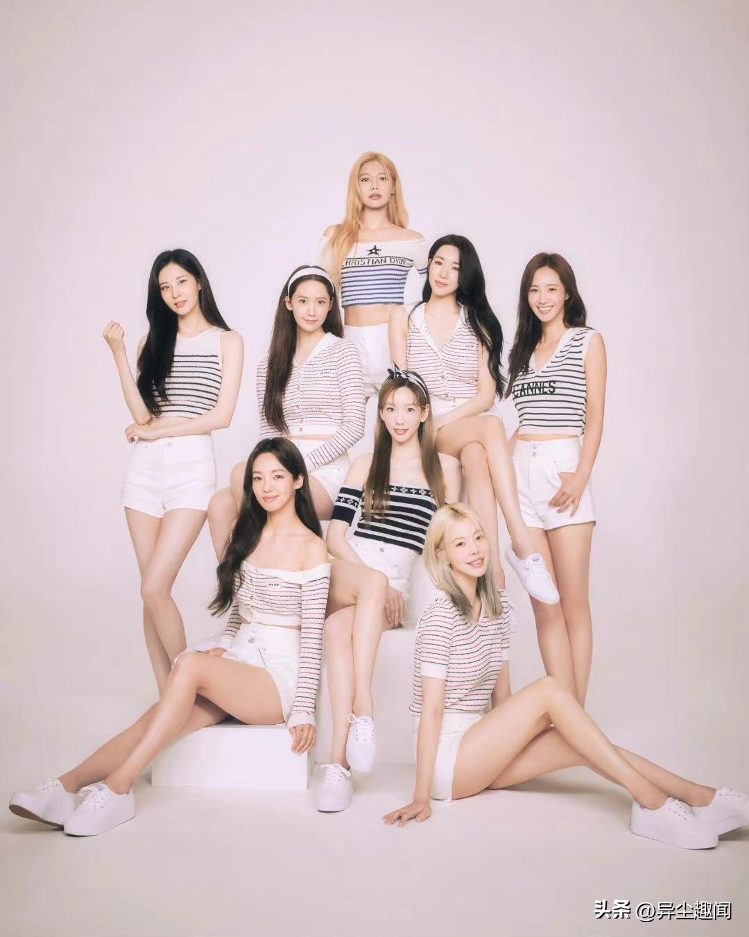少女时代睽违五年合体回归推音乐专辑,其中一张同框照可见全员穿上清新感的海军风造型。