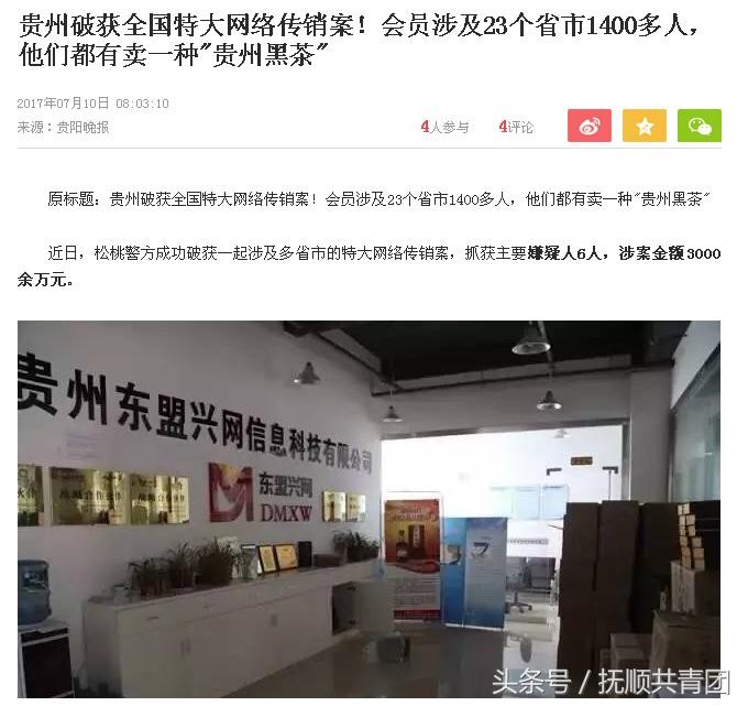 同时,抚顺市打传办工作人员提醒市民,《禁止传销条例》规定:组织者或者经营者通过发展人员,要求被发展人员交纳费用或者以认购商品等方式变相交纳费用,取得加入或者发展其他人员加入的资格,牟取非法利益的,属于传销行为。针对黑茶涉嫌传销并在东北地区蔓延的问题,市打传办提醒市民,遇到此类事件要提高警惕,切莫上当受骗。