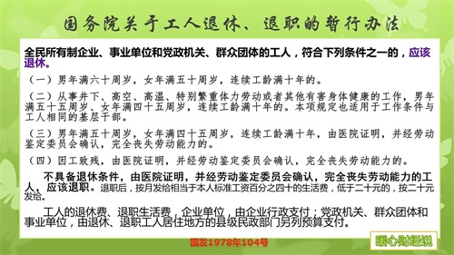 目前我们的退休年龄制度是刚性退休制度,达到退休年龄必须退休。1978年实施的国发104号文件,关于工人退休退职的暂行办法中,所用的表述是“应该退休”,其实法律法规中这样的表述就是必须的意思。