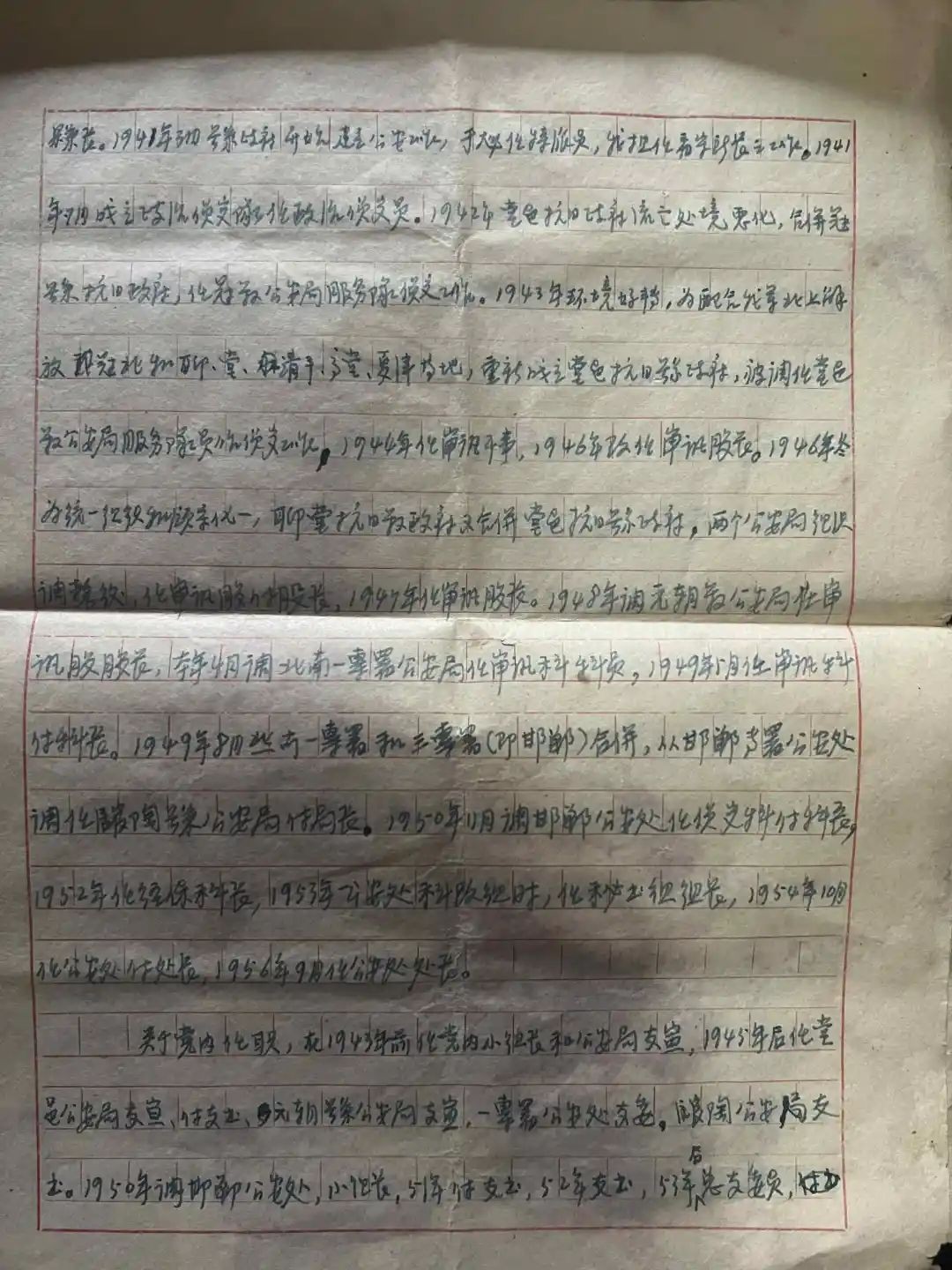 除此之外,赵主任还将其父亲的照片、简历,以及一份亲笔书写于1958年的自传,提供给了邯郸警察博物馆。