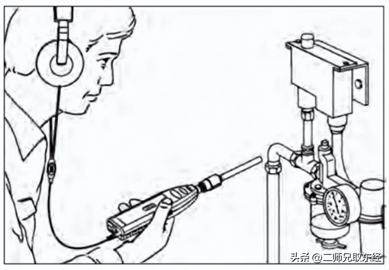 容器内或管道内充满气体 ,一旦有漏孔,,气体就会冲出。当漏孔尺寸较小且雷诺数较高时,冲出气体就会形成湍流,湍流在漏孔附近会产生一定频率的声波,声波振动的频率与漏孔尺寸有关,漏孔较大时人耳可听到漏气声。当漏孔很小且声波频率很高时,人耳就听不到了,但它们能在空气中传播,被称作空载超声波。超声波是高频短波信号,其强度随着传播距离的增加而迅速衰减。超声波具有指向性,利用这个特征,即可判断出正确的泄漏位置。