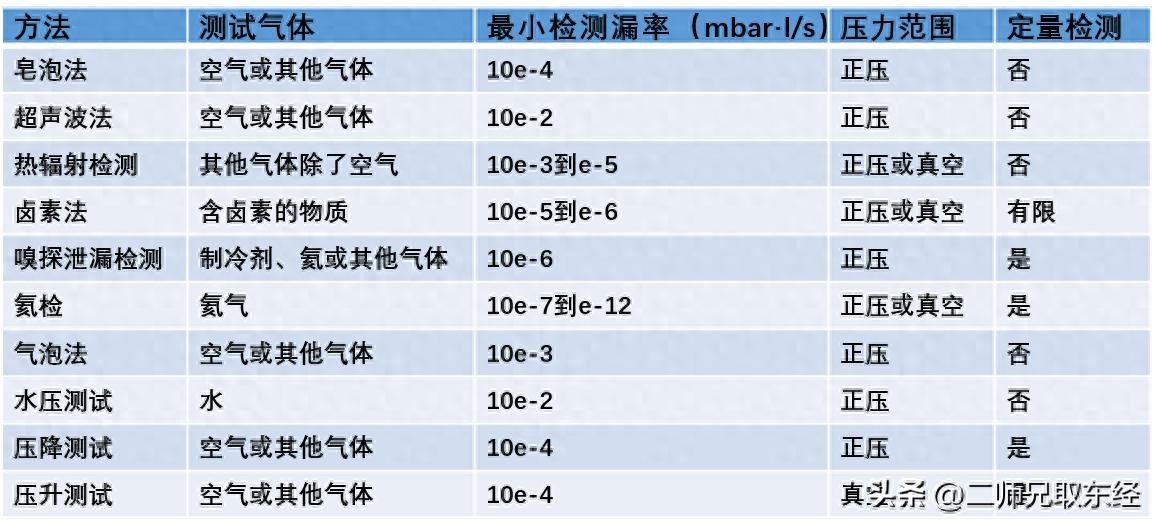 对于水气管路、真空腔等,气密性是保证设备正常运行或达到良好效果的重要指标,尤其是半导体设备内有易燃易爆或腐蚀性、有毒气体时,良好的气密性是保证安全的前提。不同的场合对气密性有不同的要求,常见的10种泄漏检测方法如下: