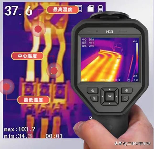 在漏孔处,气体逸出或进入腔室,热胀冷缩,导致局部温度变化。通过高精度的热成像仪找到漏孔位置,常用于暖气或冷媒管道泄漏检测。