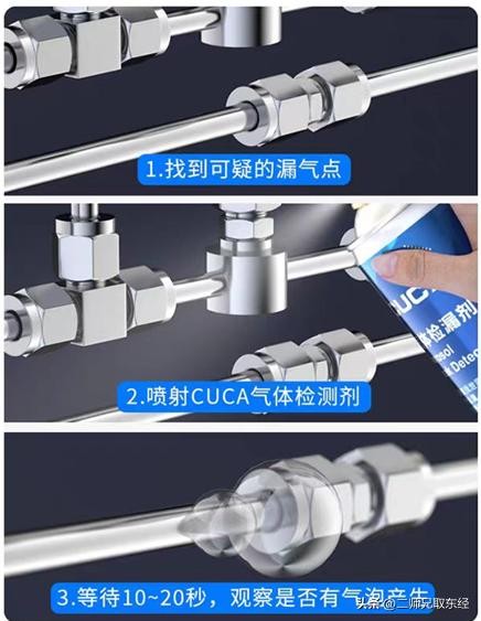 利用皂泡法进行接口检漏时,在管路内充入一定压力的示漏气体后,在怀疑有漏孔的地方涂抹肥皂液,形成肥皂泡说明有泄漏。专业规范测试可以采用气体泄漏检测喷剂。