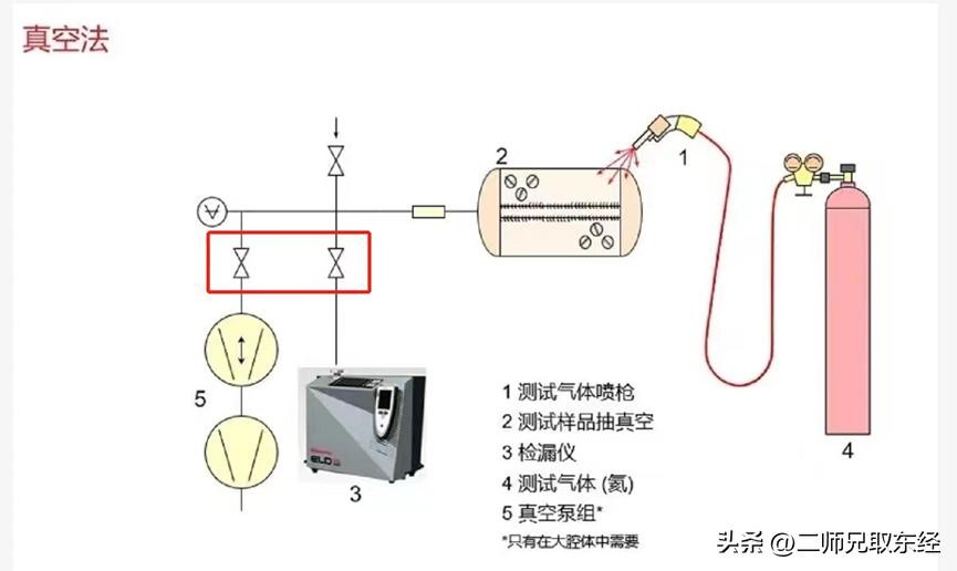 如果需要检测的漏率准确,在喷氦气时,需要待测腔室和大抽速真空泵断开,否侧进入腔室的一部分氦气会被辅助真空泵抽走,导致测得的漏率偏小。