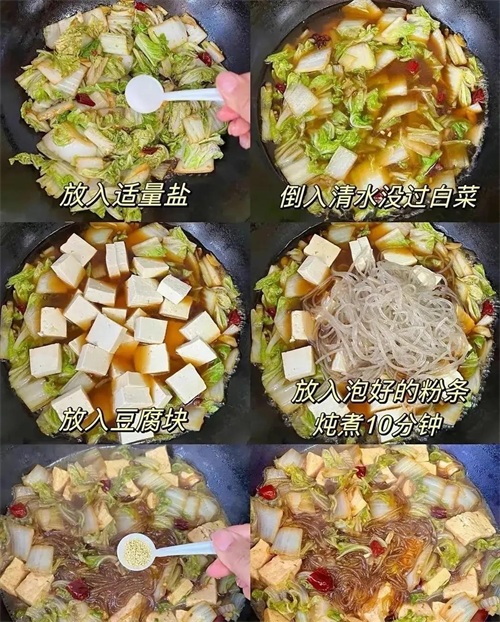 这是一道家常素菜,简单易做。将白菜切块,豆腐切成小块。热锅加水,将切好的白菜和豆腐放入锅中,加入适量盐和鸡精,炖至豆腐入味即可。
