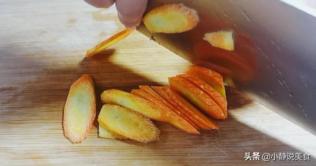 接下来再准备一小根儿胡萝卜,把胡萝卜去皮切片