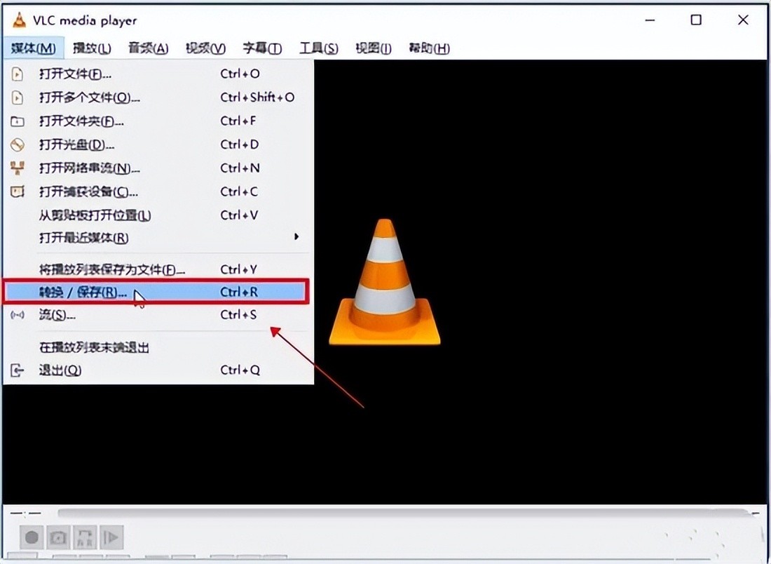 1、打开vlc媒体播放器,点击第一个菜单栏中的“媒体”功能键,接着在下拉菜单中找到“转换/保存”选项并点击进入。