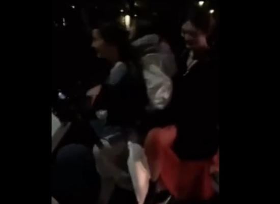 虽然王思聪的微博没有留下痕迹,但手快的网友已经录了屏。视频里,三个女生穿着羽绒服套着礼服骑着一辆电瓶车,坐在左前方的美女因为有人录视频用一只手遮住了脸。