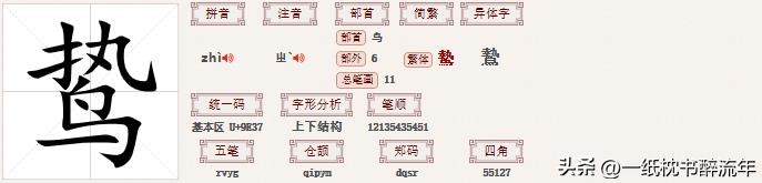 鸷的同音字:zhì 置、质、帜、滞、 致、 治