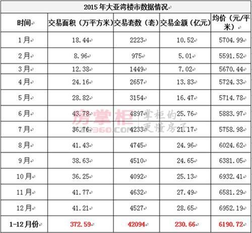 大亚湾2015年成交数据