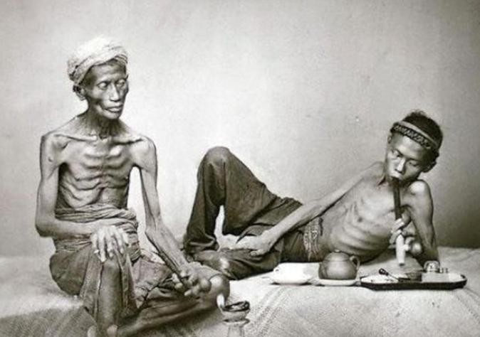 这张照片让人深刻地感受到了鸦片对人体的摧残。那个时代,许多男子因为吸食鸦片而失去了劳动能力,甚至失去了生命。