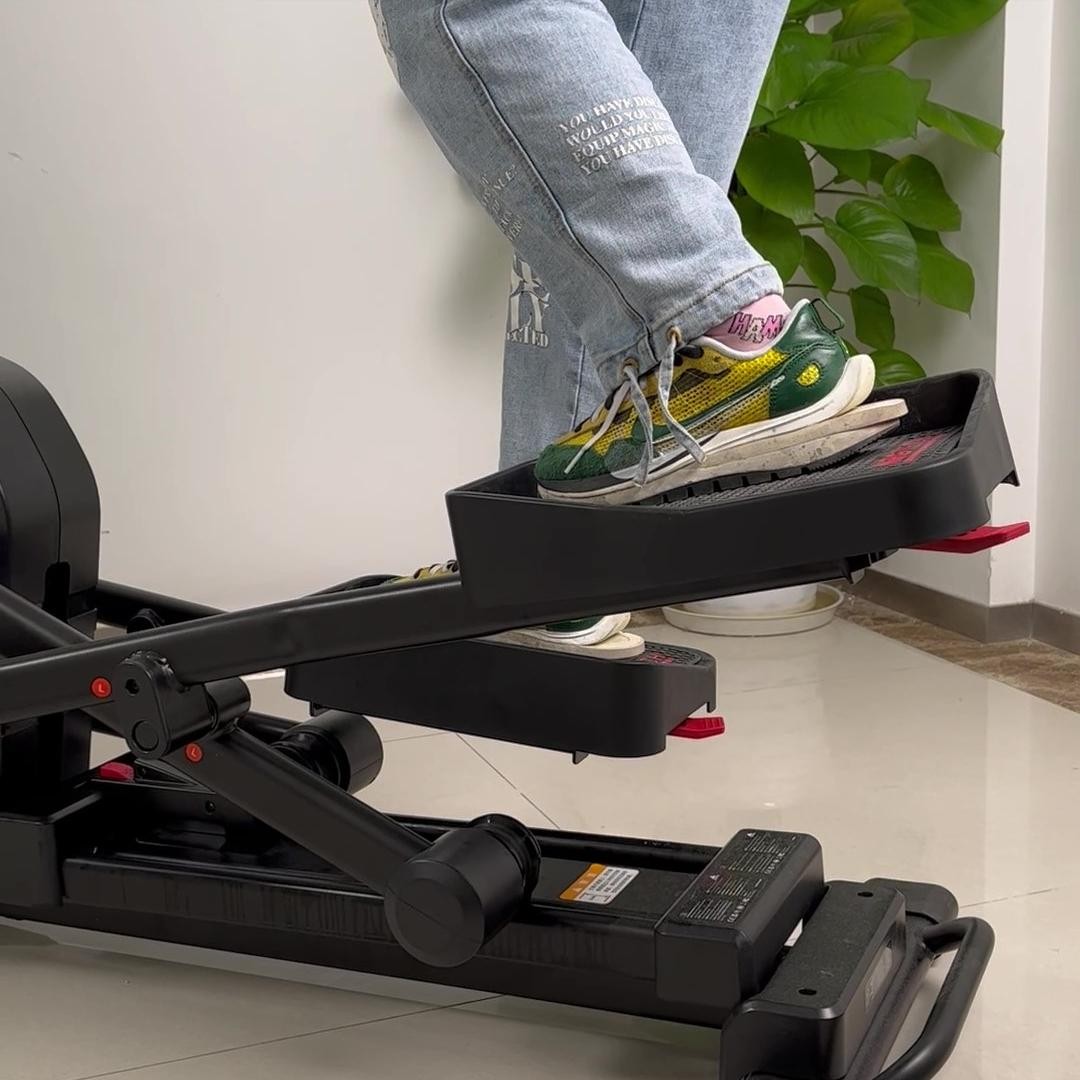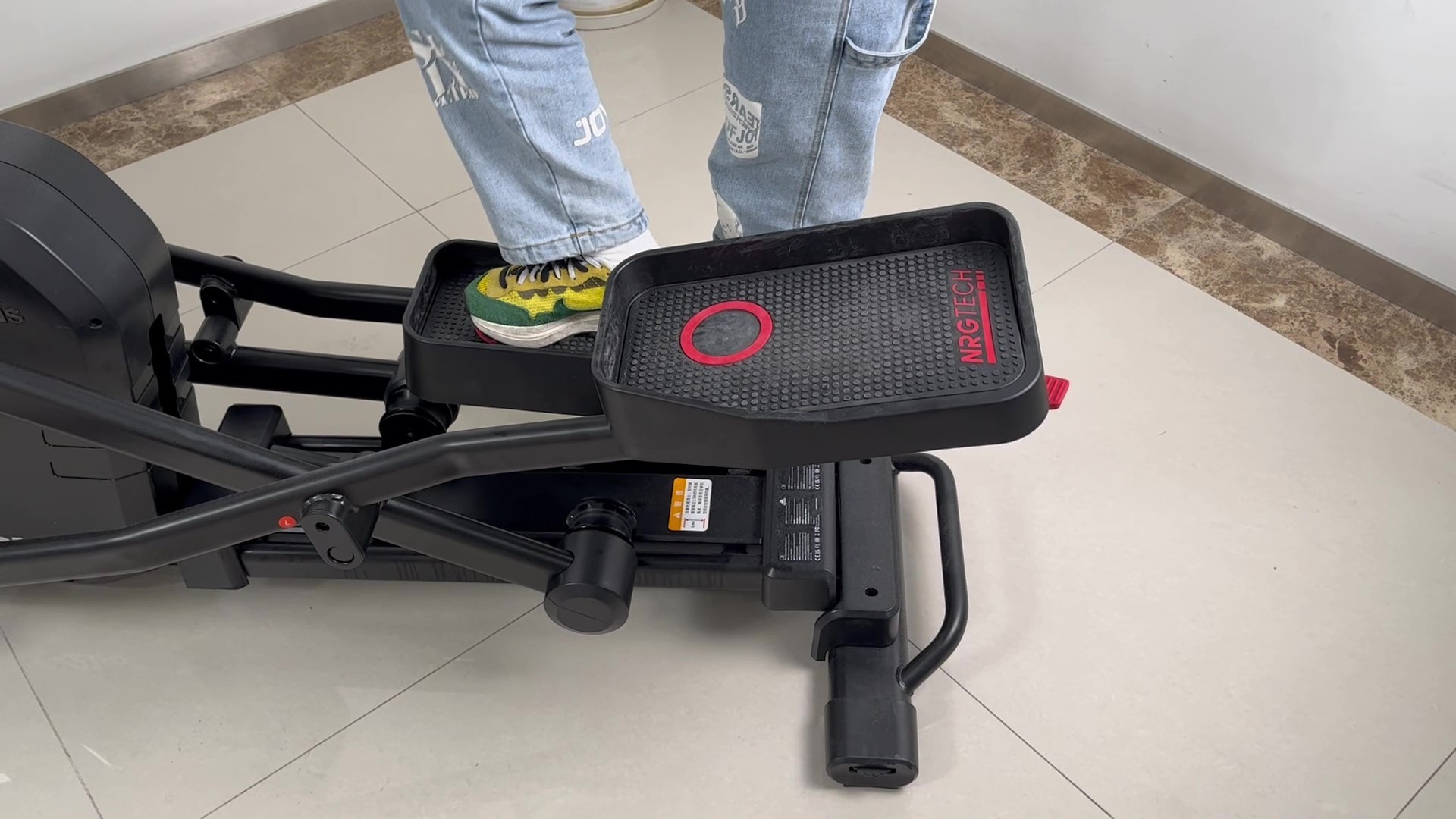 首先,每次使用前需要确保机器是否放置平稳,各链接关节零件是否有松动,检查轨道不要出现脱轨情况。上机时,手扶住固定把手,一只脚从脚踏板低的一侧上机,另一只脚顺势踩上另一侧踏板。保证双脚踏实踏板,双脚保持在踏板前侧相同位置,保证左右双脚运动轨迹一致,并且防止运动中打滑。双手握住移动扶手或者固定扶手。