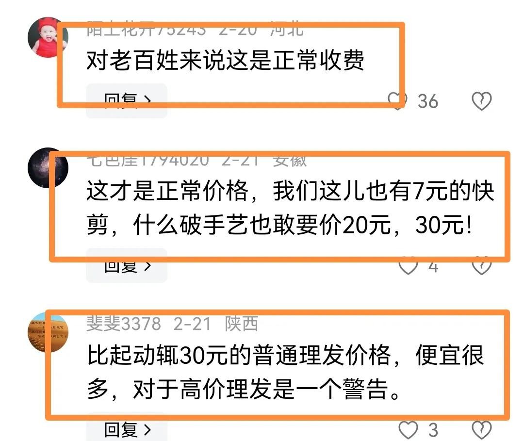 “这才是正常价格,我们这儿也有7元的快剪,什么破手艺也敢要价20元,30元!”