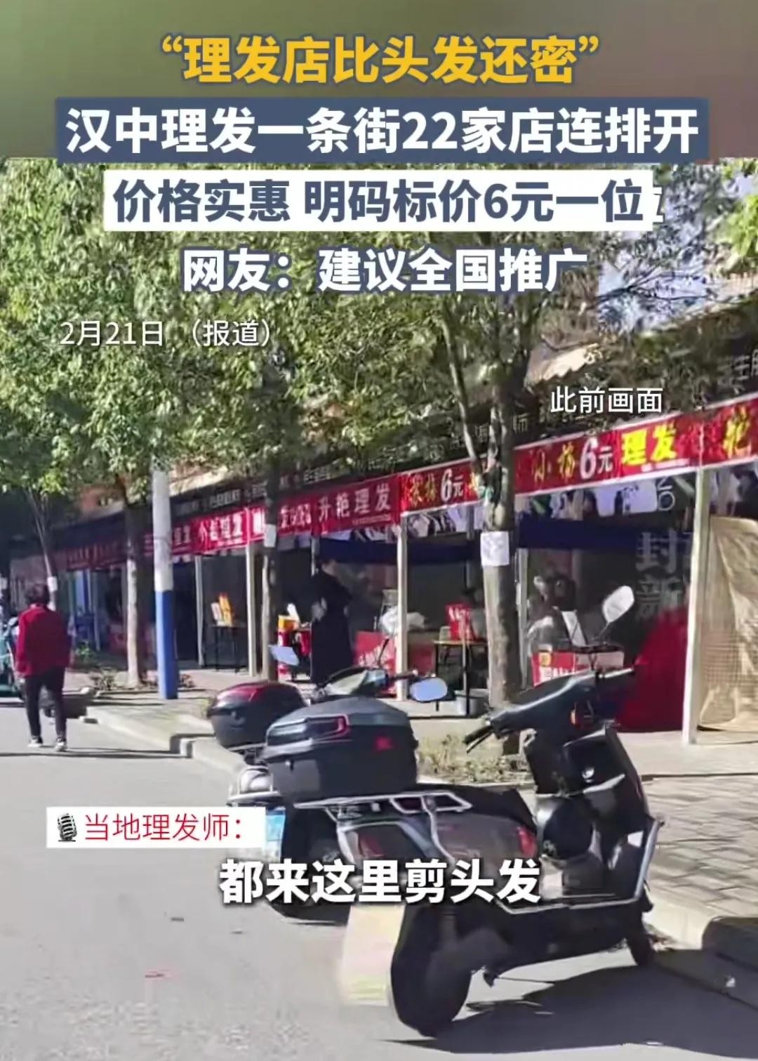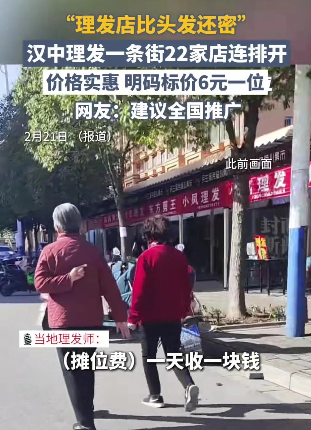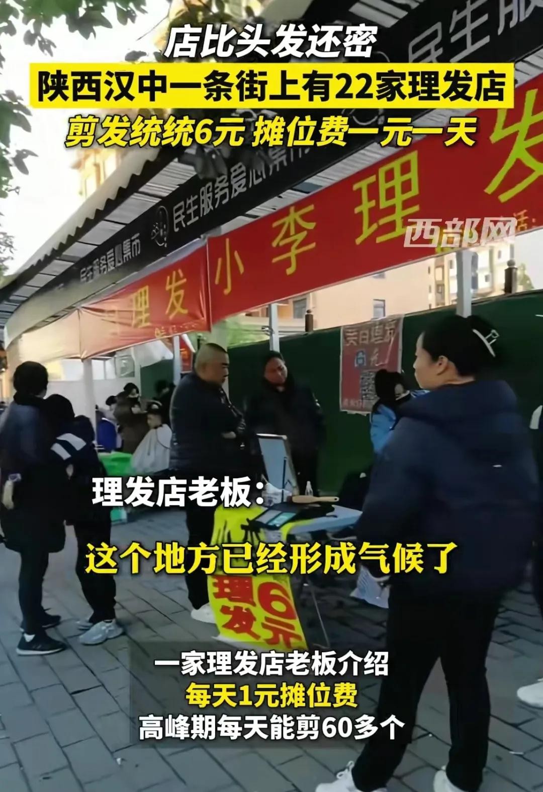 剪发6元,摊位费1元!汉中理发一条街真壮观,网友:建议全国推广
