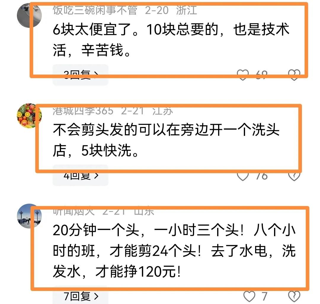 6块钱理发是什么概念?现在全国各地,包括农村,估计都没有这个价格,有的城市的快剪都需要20块钱,精剪甚至达到30~40元。你说人家6块钱也能理一次头发,可见这里面的利润得有多大?这能说明什么问题?第一,理发的利润确实大,而且近年来理发的价格是逐年攀升,老百姓是有苦难言。第二,普通老百姓确实消费不起那么高的理发费用,6块钱接地气,才能受欢迎,你们说对吧?