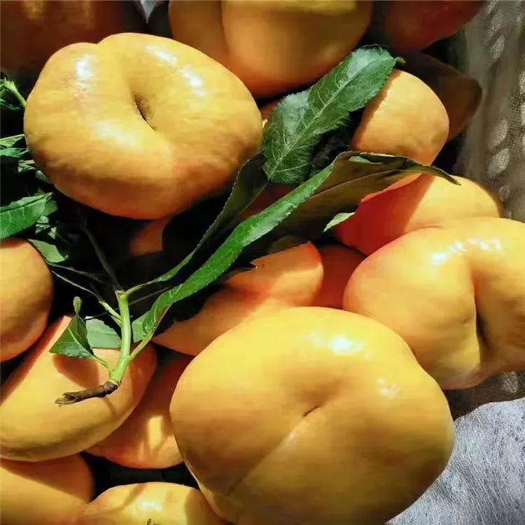油蟠桃品种,属于特色高档桃。果实是黄金色的,表光漂亮,没有红斑,形状扁平非常好看。果肉硬,厚度均匀,风味浓郁,口感浓甜,香气十足,品质也是极好的。