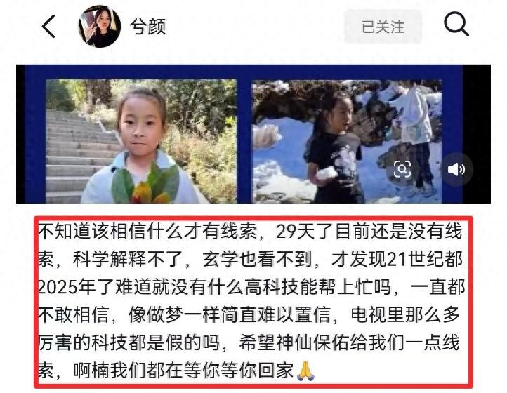 8岁女童失踪29天,家属发文:2025年科学解释不了,寄托于玄学!