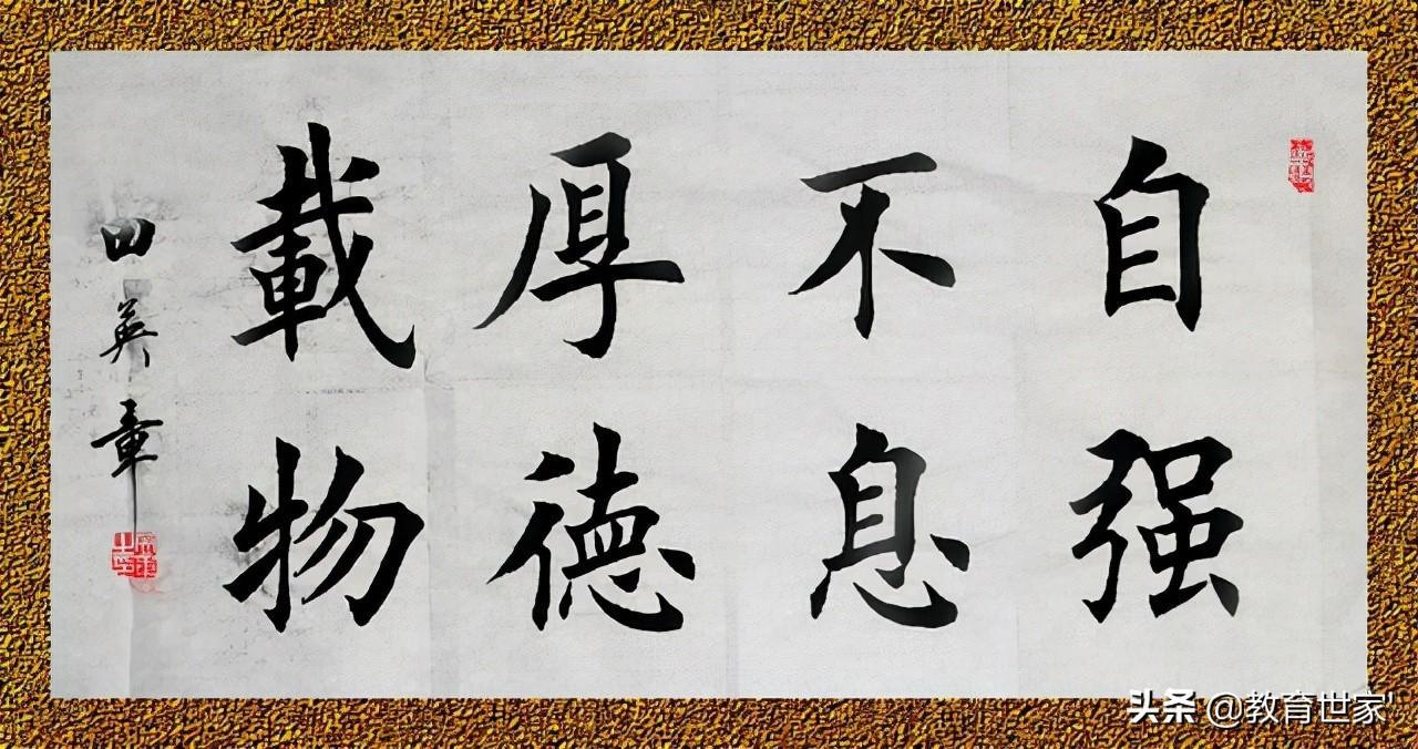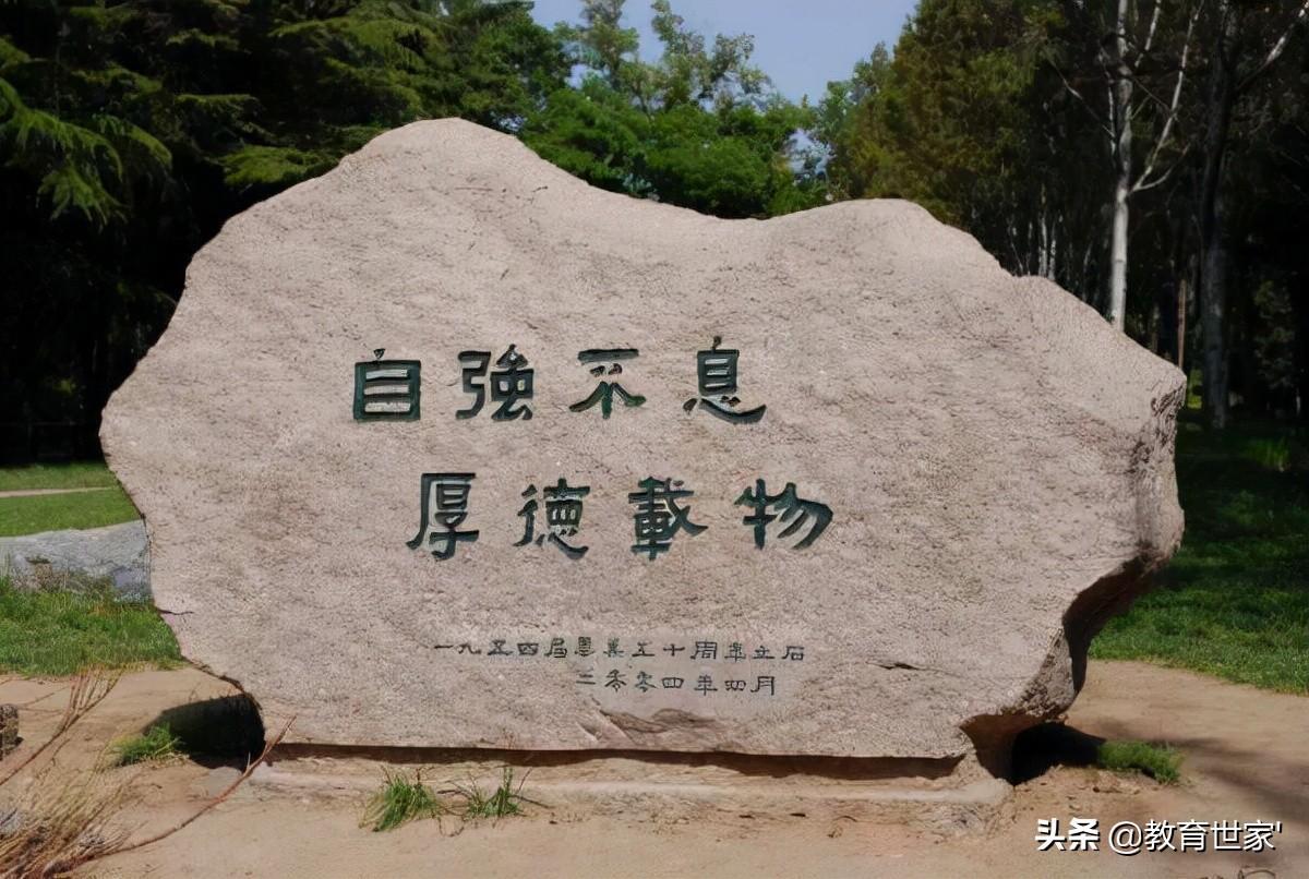 “自强不息,厚德载物”出自《周易》,曰:天行健,君子以自强不息(乾卦);地势坤,君子以厚德载物(坤卦)。“自强不息 厚德载物”也是清华大学的校训。民国时期,梁启超在清华大学任教时,曾给当时的清华学子作了《论君子》的演讲,他在演讲中希望清华学子们都能继承中华传统美德,并引用了《易经》上的“自强不息”“厚德载物”等话语来激励清华学子。此后,清华人便把“自强不息,厚德载物”8个字写进了清华校规,后来又逐渐演变成为清华校训。