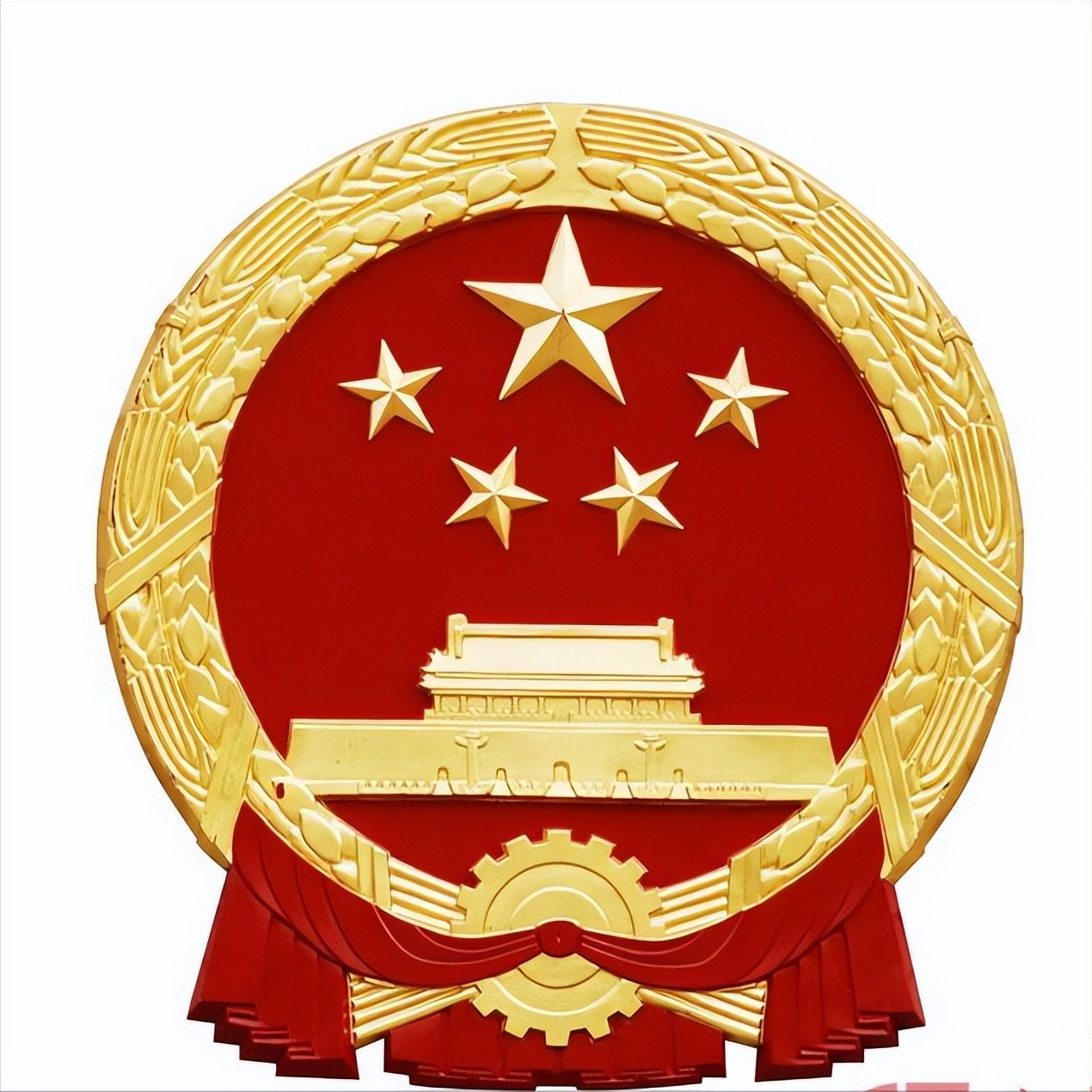 1950年9月20日,中央人民政府主席毛泽东发布命令,公布中华人民共和国国徽图案。中华人民共和国国徽图案于1950年6月18日在中国人民政治协商会议一届二次会议上通过,6月28日中央人民政府委员会第8次会议批准采纳。中华人民共和国国徽内容为国旗、天安门、齿轮和麦穗,象征中国人民自五四运动以来的新民主主义革命斗争和工人阶级领导的以工农联盟为基础的人民民主专政的新中国的诞生。
