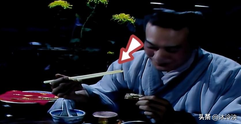 这还不算完,当镜头给到甄士隐的正脸时,手中的一次性筷子又变成了金签,这个穿帮镜头就有些敷衍了啊,再说这一次性筷子那个时候还没有的吧?
