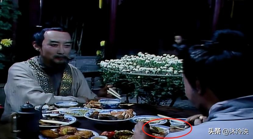 不仅如此,在剧中这个片段里,镜头中甄士隐邀请贾雨村来到自己的家中吃饭,为了迎接贾雨村的到来,甄士隐还特意准备了一桌子螃蟹。