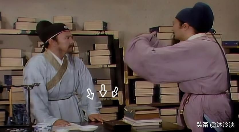 两人在谈完事情后,贾雨村寒暄一番便站起身准备离开,他一边说话一边还不忘拱手送别,然而让人想不到的是,上一秒书桌上还有一个黄色折子,现如今却消失不见了,这是一个细节上的穿帮镜头。